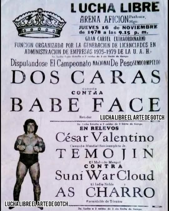 MORA (FRI) 11/17/1978 Arena Aficion 1) Cesar Valentino & Temojin vs As Charro & Sunny War Cloud 2) Dos Caras vs Babe Face [MEX LH]