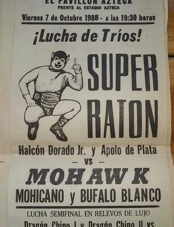 SuperLibres (FRI) 10/07/1988 Pavillon Azteca, Coyoacán, Distrito Federal 1) Dragón Chino I & Dragón Chino II vs ? & ?? 2) Apolo De Plata, Halcón Dorado Jr., Súper Ratón vs Búfalo Blanco, Mohawk, Mohicano