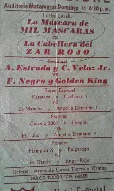 Event Notes: date is a total guess, all that’s listed is Sunday 11th, seems to follow other Mil Mascaras/Zar Rojo matches