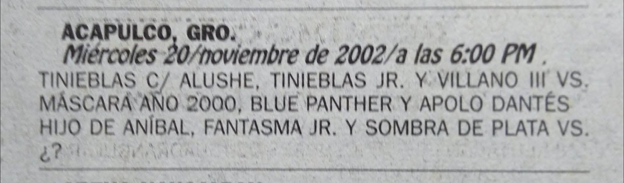 CMLL (WED) 11/20/2002 Arena Coliseo Acapulco, Acapulco, Guerrero