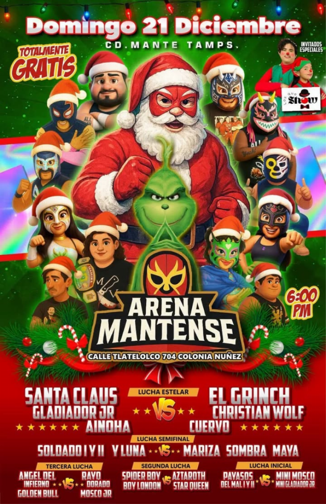 5) Ainoha, Gladiador Jr., Santa Claus vs Cristian Wolf, Cuervo, El Grinch