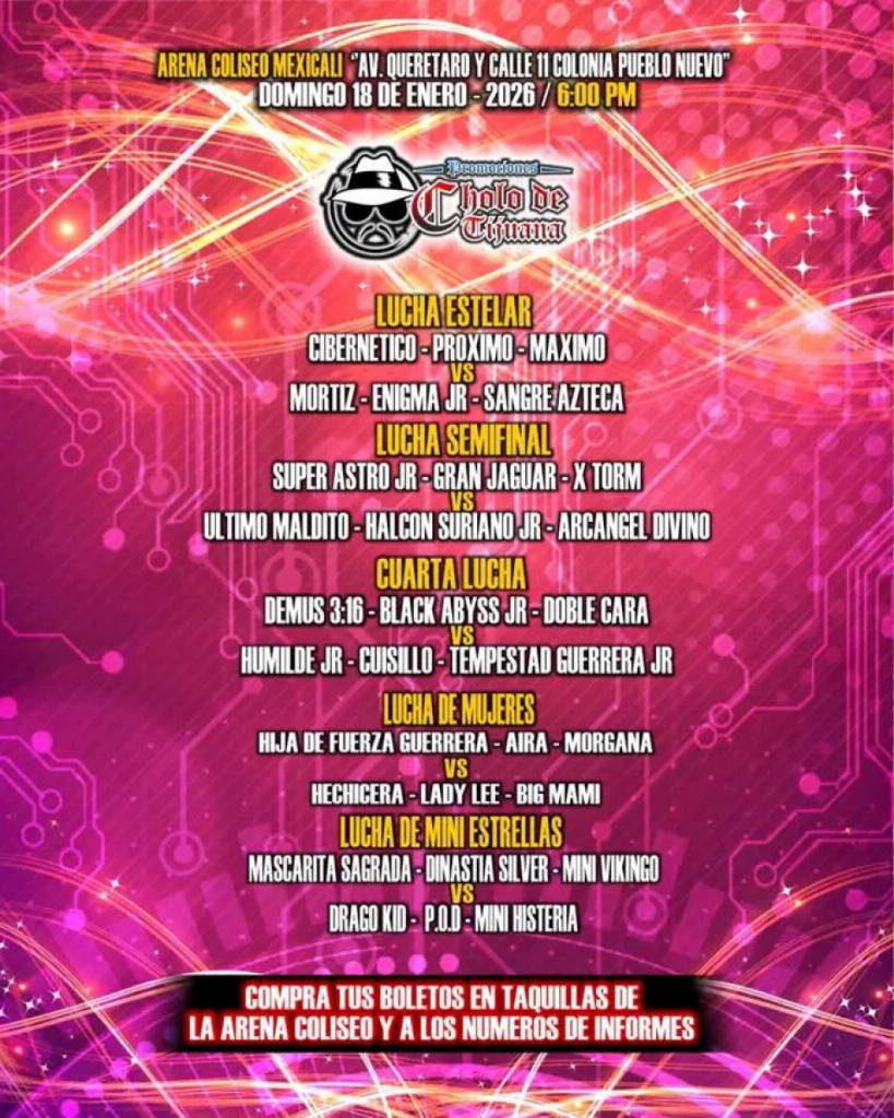 Cholo de Tijuana (SUN) 01/18/2026 Arena Coliseo Mexicali, Mexicali, Baja California