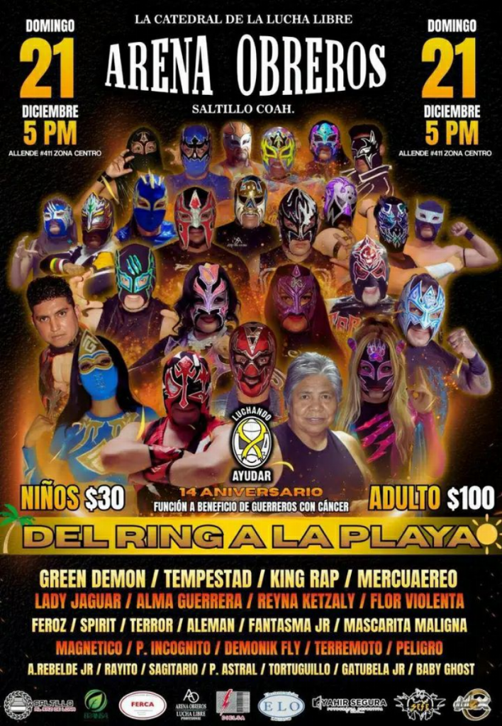 1) Green Demon vs Tempestad, King Rap, Mercuaereo, Lady Jaguar, Alma Guerrera, Reyna Ketzaly, Flor Violenta, Feroz, Spirit, Terror, Aleman, Fantasma Jr., Máscarita Maligna, Magnetico, P. Incógnito, Demonik Fly, Terremoto, Peligro, A. Rebelde Jr., Rayito, Sagitario, P. Astral, Tortuguillo, Gatubela Jr., Baby Ghost