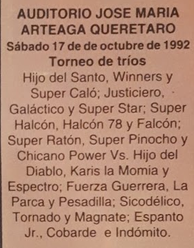 Event Notes: in SuperLuchas, this was listed as a trios tournament. Lineup is the local poster.