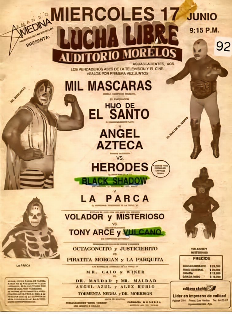 1) Ángel Azteca, El Hijo Del Santo, Mil Máscaras vs Black Shadow, Herodes, La Parca