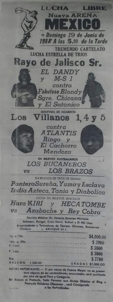 5) El Dandy, M-S 1, Rayo de Jalisco Sr. vs Fabuloso Blondy, Sangre Chicana, Satánico