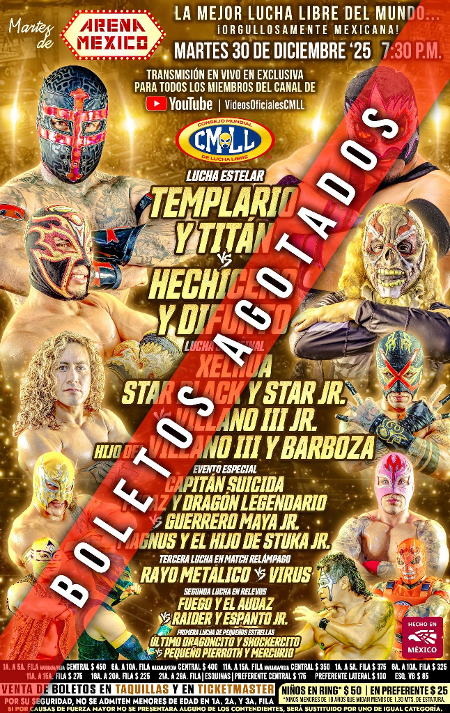 CMLL (TUE) 12/30/2025 Arena México [CMLL, Estilo Lucha Libre, Kaiser Sports]