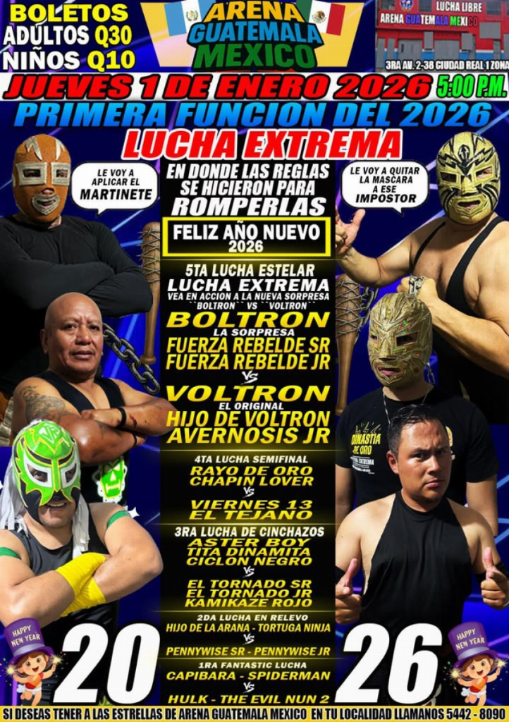 5) Boltron, Fuerza Rebelde Jr., Fuerza Rebelde Sr. vs Avernosis Jr., Hijo de Voltrón, Voltron