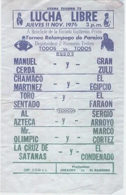 2) Gran Zulú & Manuel Cerda vs Chamaco Martinez & El Egipcio and El Faraón & Toro Sentado and Al Azteca & Sergio Arroyo and Marco Cortez & Mr. Olimpic and El Condenado & La Cruz De Satanas