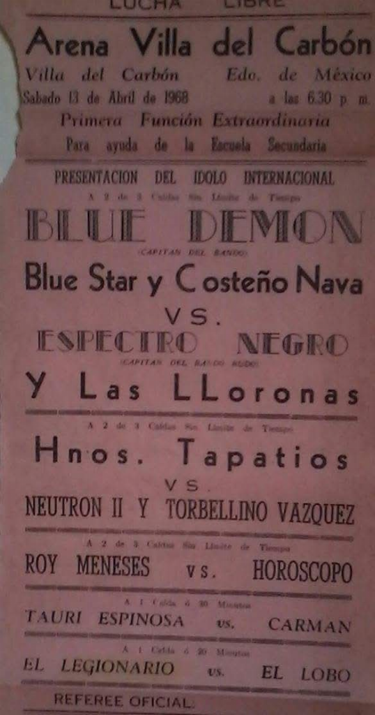 5) Blue Demon, Blue Star, Costeño Nava vs Espectro Negro, Llorona I, Llorona II