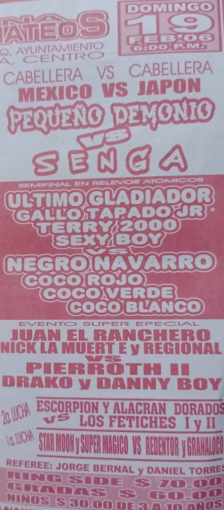 4) Gallo Tapado Jr., Sexy Boy, Terry 2000, Último Gladiador vs Coco Blanco, Coco Rojo, Coco Verde, Negro Navarro
