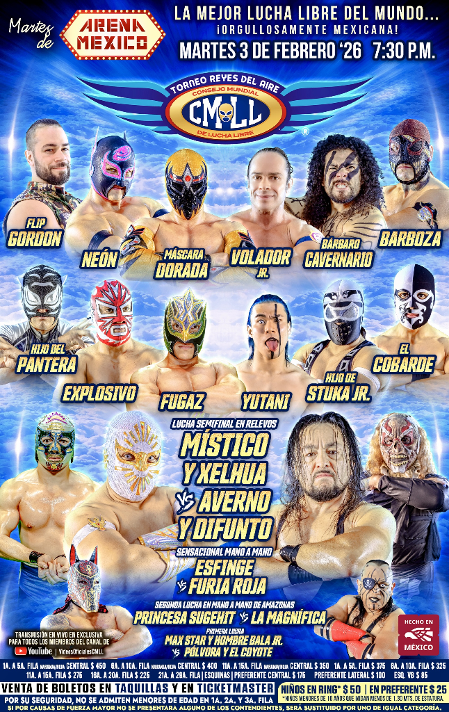 5) Flip Gordon vs Neón, Máscara Dorada, Volador Jr., Bárbaro Cavernario, Barboza, Hijo del Pantera, Explosivo, Fugaz, Yutani, Hijo de Stuka Jr., El Cobarde [Reyes del Aire]