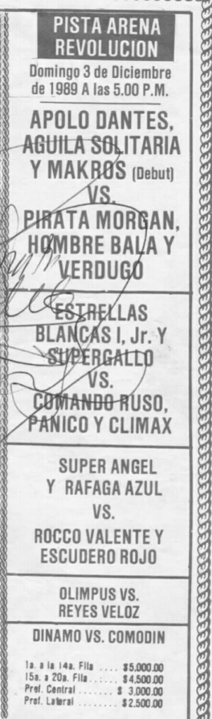 EMLL (SUN) 12/03/1989 Pista Arena Revolución