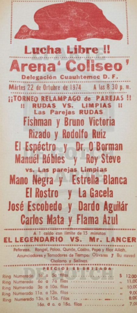 2) Bruno Victoria & Fishman vs Estrella Blanca & Mano Negra and Rizado Ruiz & Rodolfo Ruiz and El Rostro & La Gacela and Dr. O’Borman & El Espectro and Dardo Aguilar & José Escobedo and Manuel Robles & Roy Steve and Carlos Mata & Flama Azul
