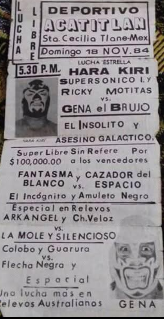 5) Hara Kiri, Ricky Motitas, Supersónico I vs Asesino Galáctico, El Insólito, Gena El Brujo