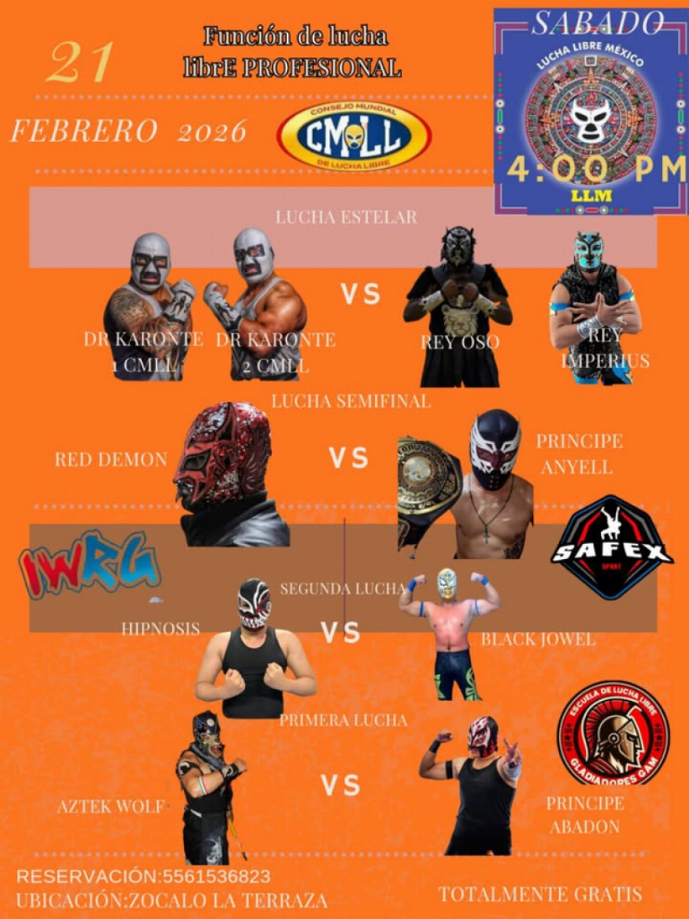 LLM (SAT) 02/21/2026 Arena y Escuela Gladiadores de Lucha Libre, Gustavo A. Madero, Distrito Federal