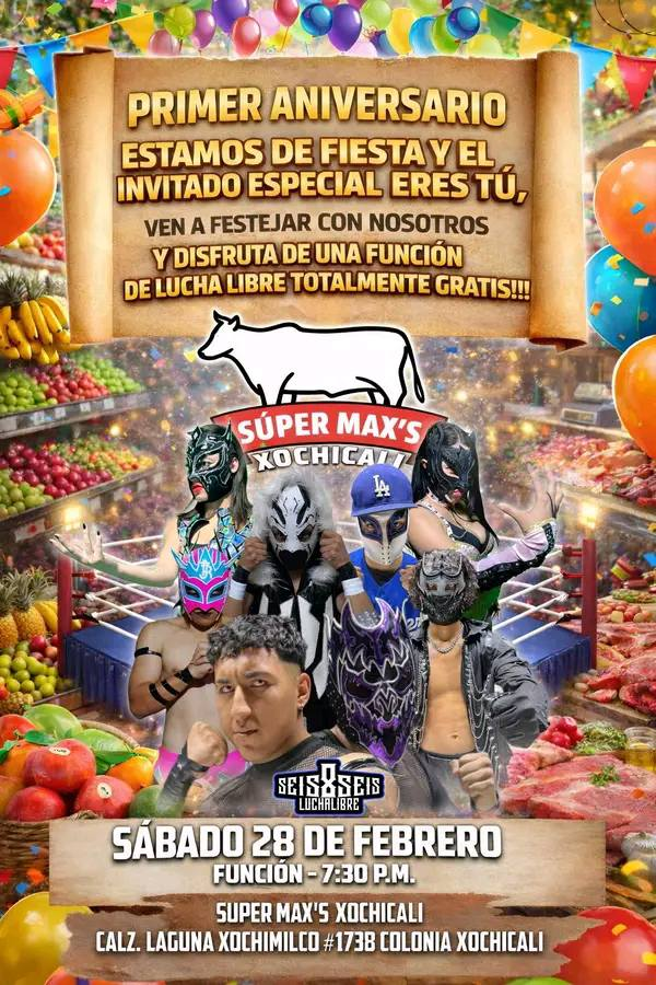 686 (SAT) 02/28/2026 Super Maxs, Mexicali, Baja California 1) Dinámico Jr. vs Baseman 2) Tirana b Miss Tiger 3) Dragón Fly & Orión b Iron Boy Jr. & Poseidón