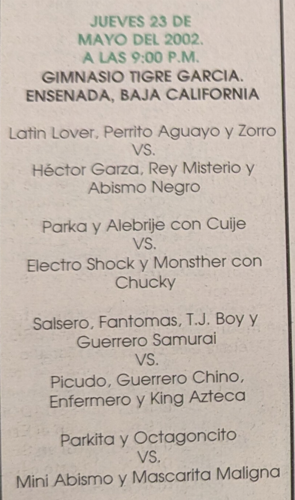 AAA (THU) 05/23/2002 Gimnasio Tigre Garcia, Ensenada, Baja California [La Magia del Ring 148]