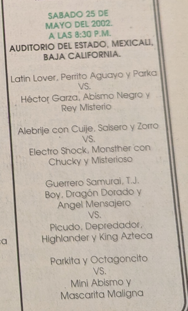 AAA (SAT) 05/25/2002 Auditorio del Estado, Mexicali, Baja California [La Magia del Ring 148]
