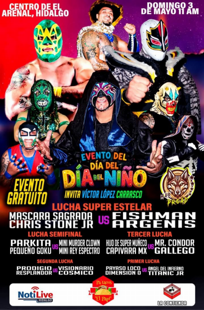 5) Chris Stone Jr. & Máscara Sagrada vs Argenis & Hijo del Fishman