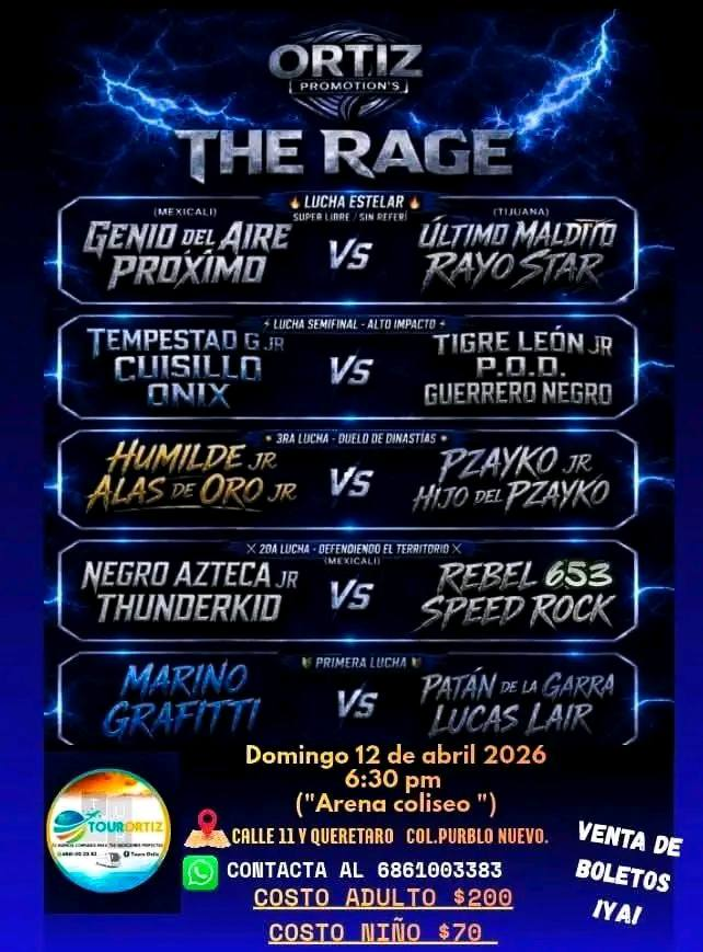 ORTIZ (SUN) 04/12/2026 Arena Coliseo Mexicali, Mexicali, Baja California [Box y Lucha]