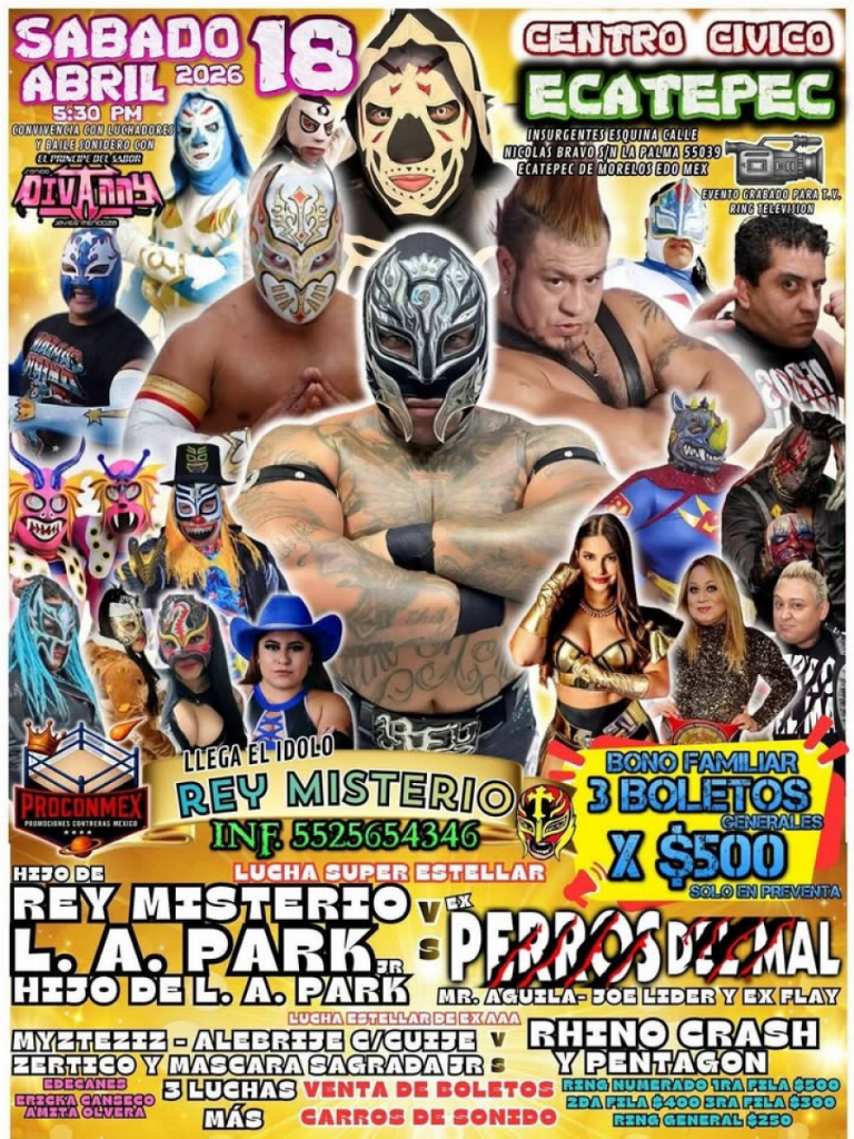 5) Hijo de L.A. Park, Hijo de Rey Misterio, L.A. Park Jr. vs Joe Lider, Mr. Águila, X-Fly